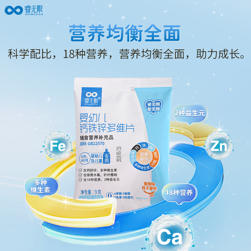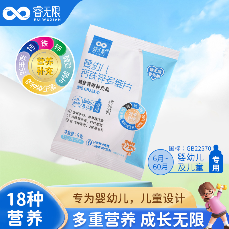 产品名称:睿无限 婴幼儿钙铁锌多维片 9g(1.5g*6片)