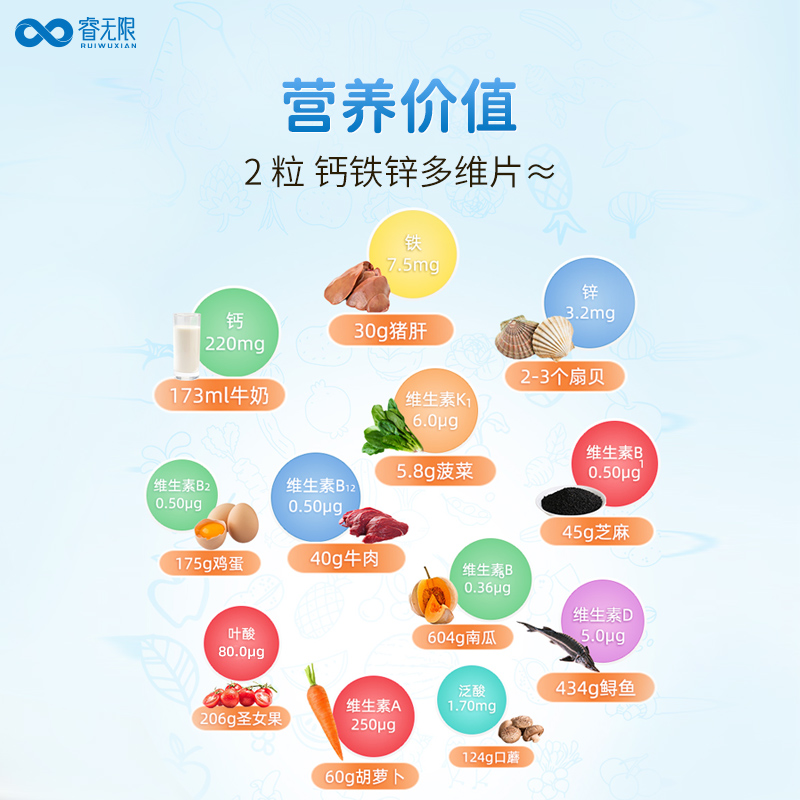 睿无限 婴幼儿钙铁锌多维片 90g(1.5g*60片)